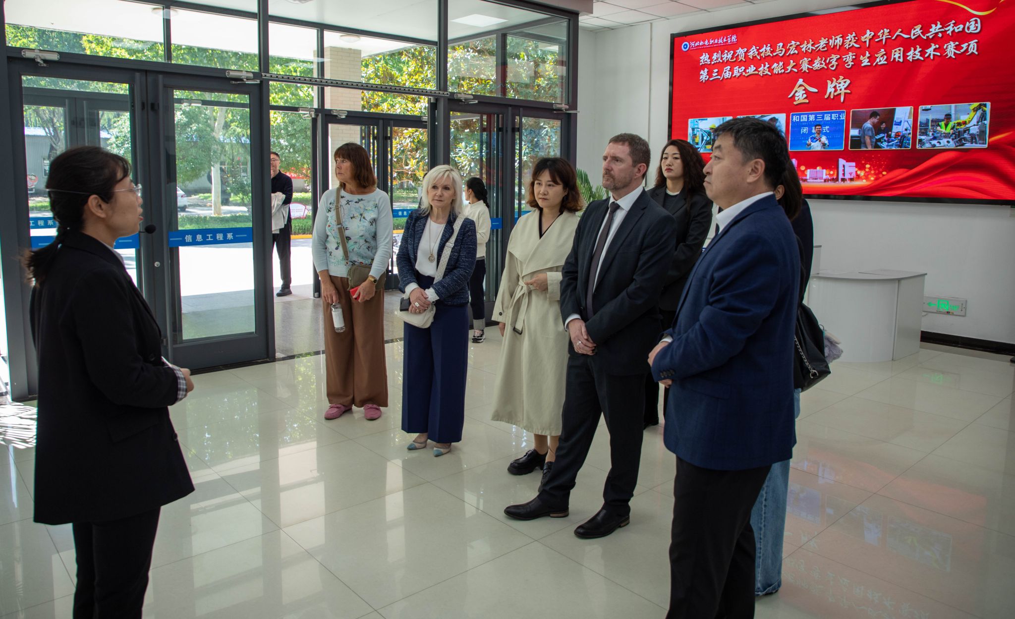 访问期间,英国北爱尔兰东南学院一行还参观了科技创新中心、实习实训中心、2号、6号和7号实训楼。