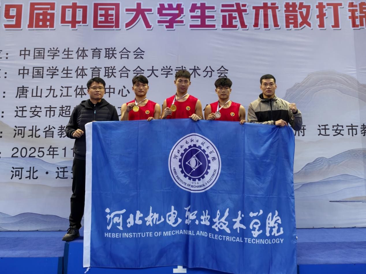 我院体育工作部主任耿晓东担任领队,赵蒙、张锐、王子頔、王嘉浩为指导教师,教练团队针对每位运动员的技术特点和对手情况,进行了针对性的战术打磨和体能强化训练,学院也为参赛队员提供了完善的后勤保障,确保队员们以最佳状态投入备战,经过5天的激烈角逐,我院运动员充分展现了过硬的竞技素养,体育工作部崔毅鹏获得乙B组74KG级金牌,王宇飞获得乙B组95KG级金牌,赵伟业获得乙B组72KG铜牌,同时赵蒙获得优秀教练员称号。