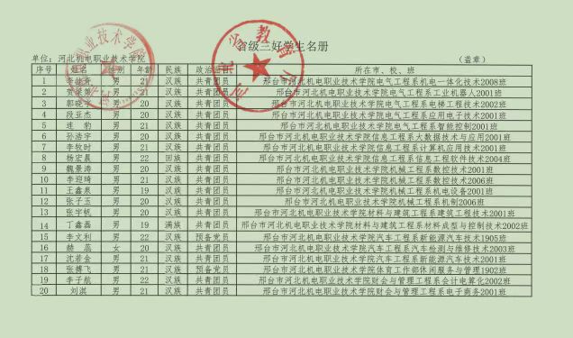 近日,河北省2021—2022学年“三好学生” “优秀学生干部”和“先进班集体”评选结果公开发布,我院共20名学生荣获“省级三好学生”荣誉称号、6名学生荣获“省级优秀学生干部”荣誉称号、3个班级荣获“省级先进班集”荣誉称号。