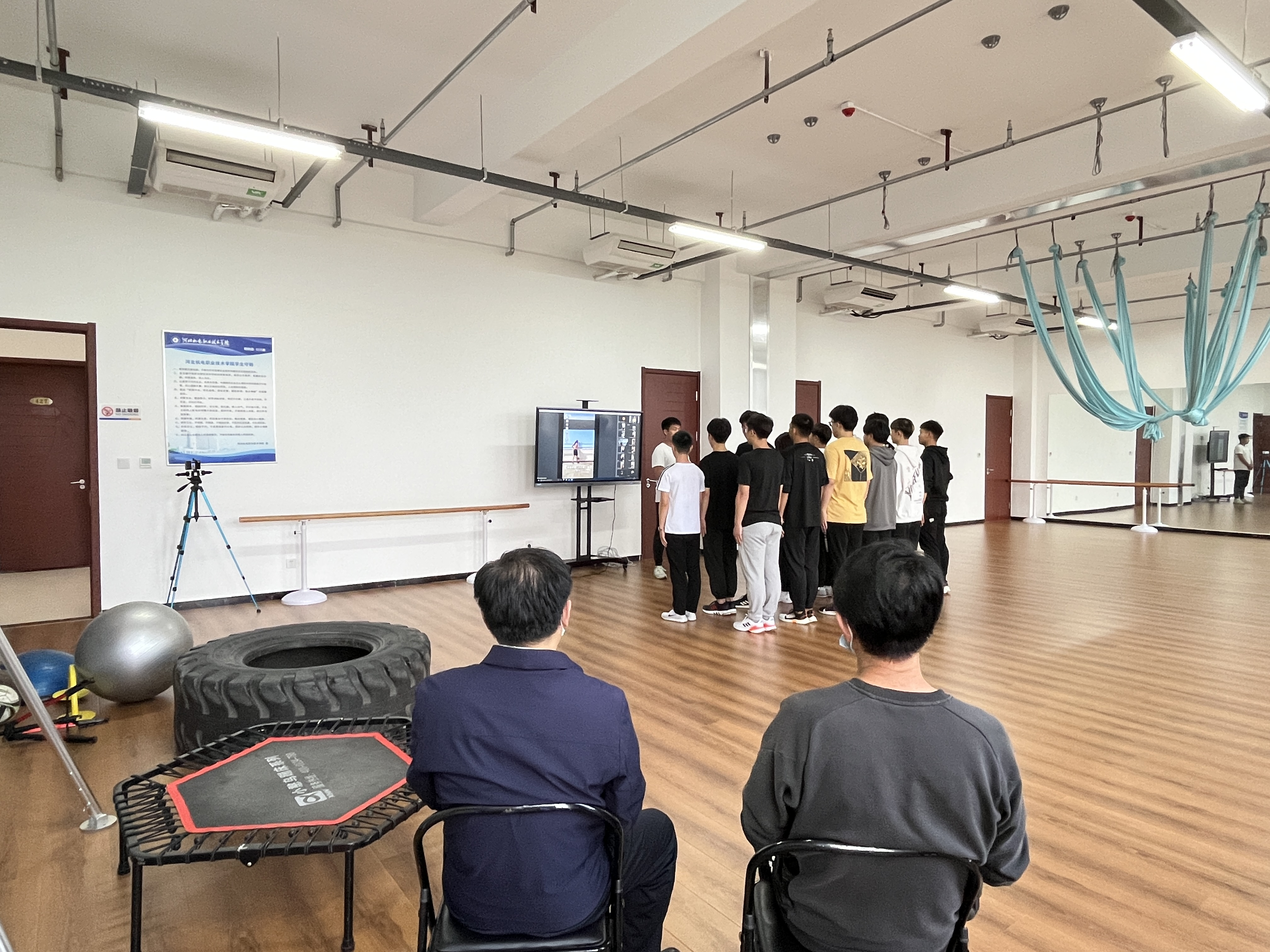2022年5月10日下午,学院党委副书记王振京深入体育工作部开展了“四进两联一活动,王振京一行人首先来到科技创新中心(2)健身中心形体瑜伽实训室,同休闲体育2101班的同学们一起上课,感受同学们在信息化教学改革后的运动热情,掌握学生们的学习动态。课后,王振京与同学们沟通交流,关心大家的专业学习情况,鼓励同学们“打铁还需自身硬”,要把身体锻炼好,专业学习好,掌握一门过硬的技术,厚积薄发的走向社会。