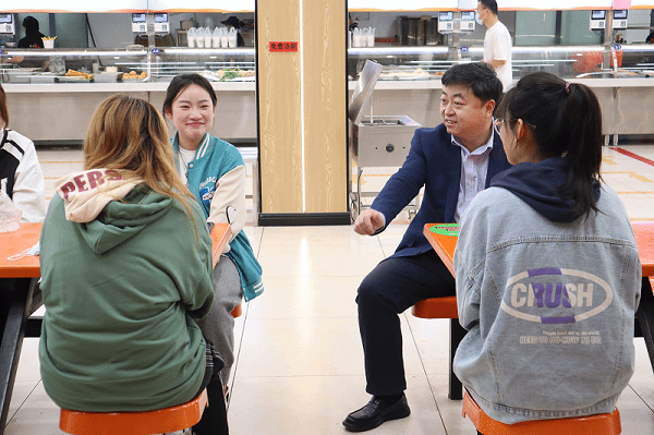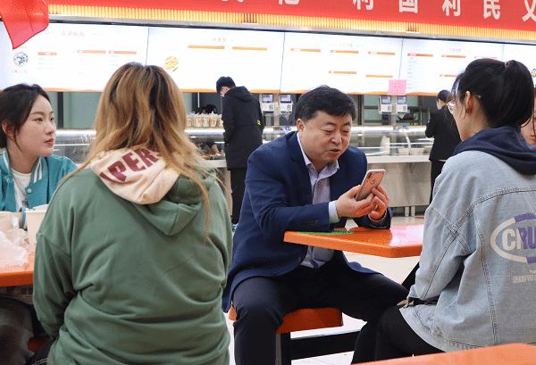 5月13日上午,张能云在美其食餐厅一楼与会计2101、2102班学生代表面对面谈心交流并共进早餐。用餐过程中,张能云热情地与同学们交谈,就专业学习、生活环境、食堂就餐、公寓管理等同学们关注的问题进行交流,同学们畅所欲言。张能云认真倾听学生们的发言,对学生们学习和生活中的困惑给出了解答和真挚的建议。为进一步了解学生情况,张能云与学生家长进行电话连线,询问学生家庭情况并向家长肯定了学生良好的在校表现,向家长表示学校和家长都共同关注着学生的成长,盼望着学生能够成才,拥有一个美好的未来。