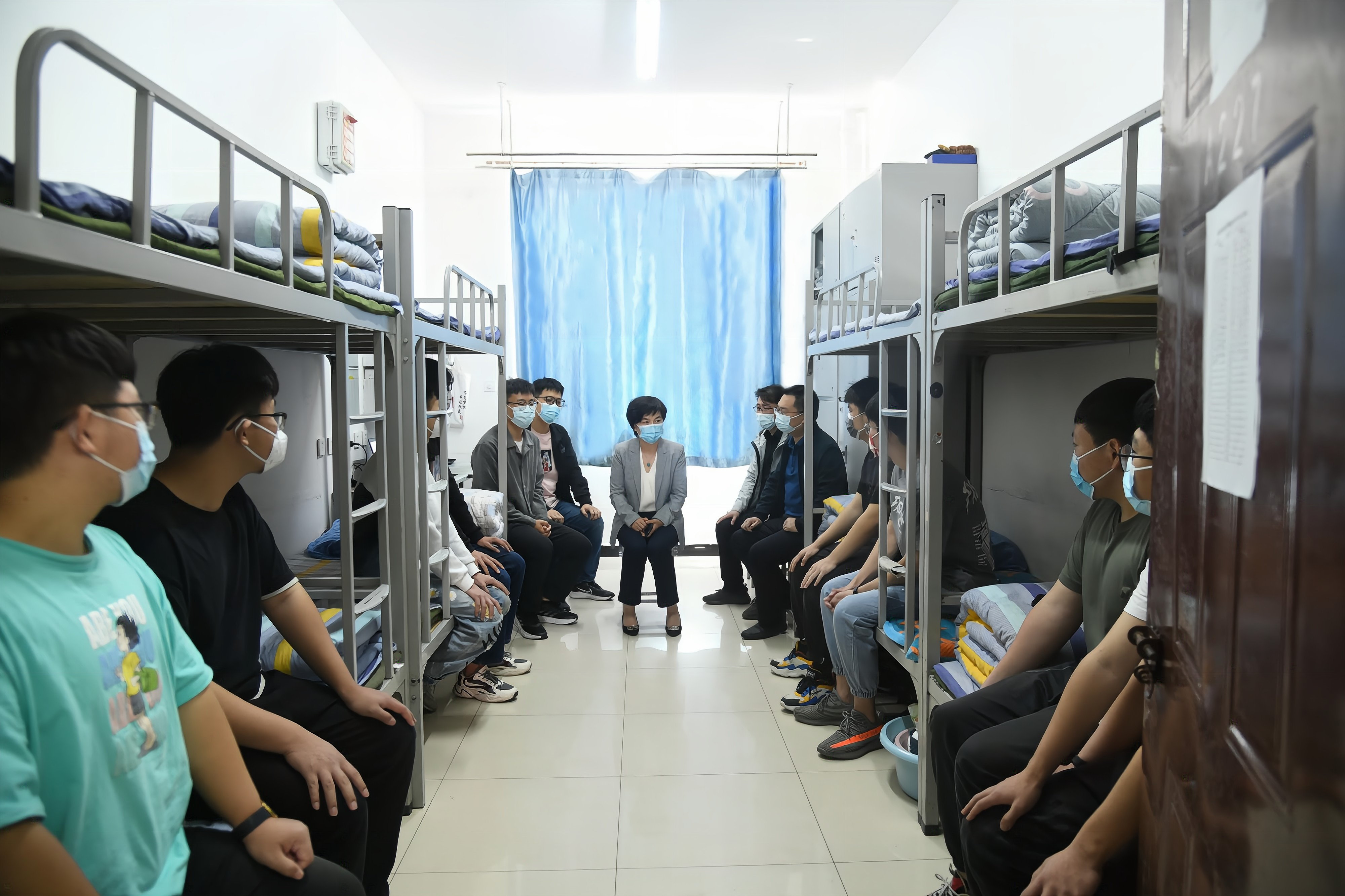 王晓凤一行进入公寓后,首先查看了公寓各项生活设施是否配套完备,能否满足学生日常需求,与宿管人员进行了详细询问,并叮嘱做实做细相关工作,为广大学生提供温馨安全的生活环境。