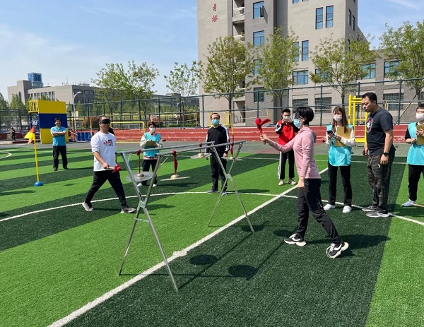 参赛教职工全情投入,在一波又一波的高潮中,比赛越发激烈,站在一旁观战的老师们也不时爆发出叫好声、喝彩声。每一位教职工,每一个团队,都牵动着在场观众的心。大家彼此加油、呐喊,现场的气氛热烈活泼。这不单是智慧与体力的角逐,更是团结与协作的完美比拼,教职工间的默契配合让比赛现场更加趣味横生。