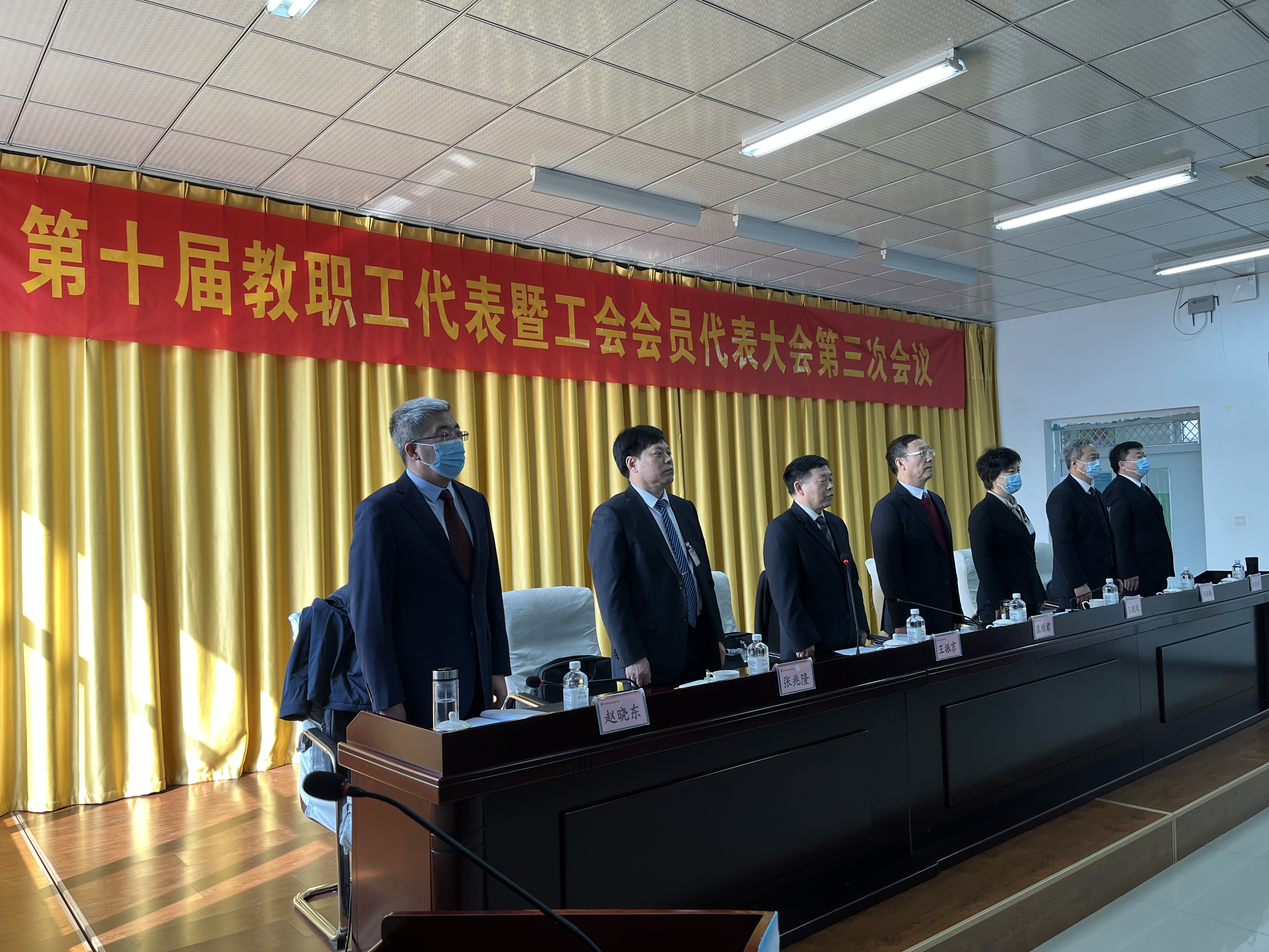 伴随着庄严的《国际歌》,学院第十届教职工代表暨工会会员代表大会第三次会议顺利闭幕。
