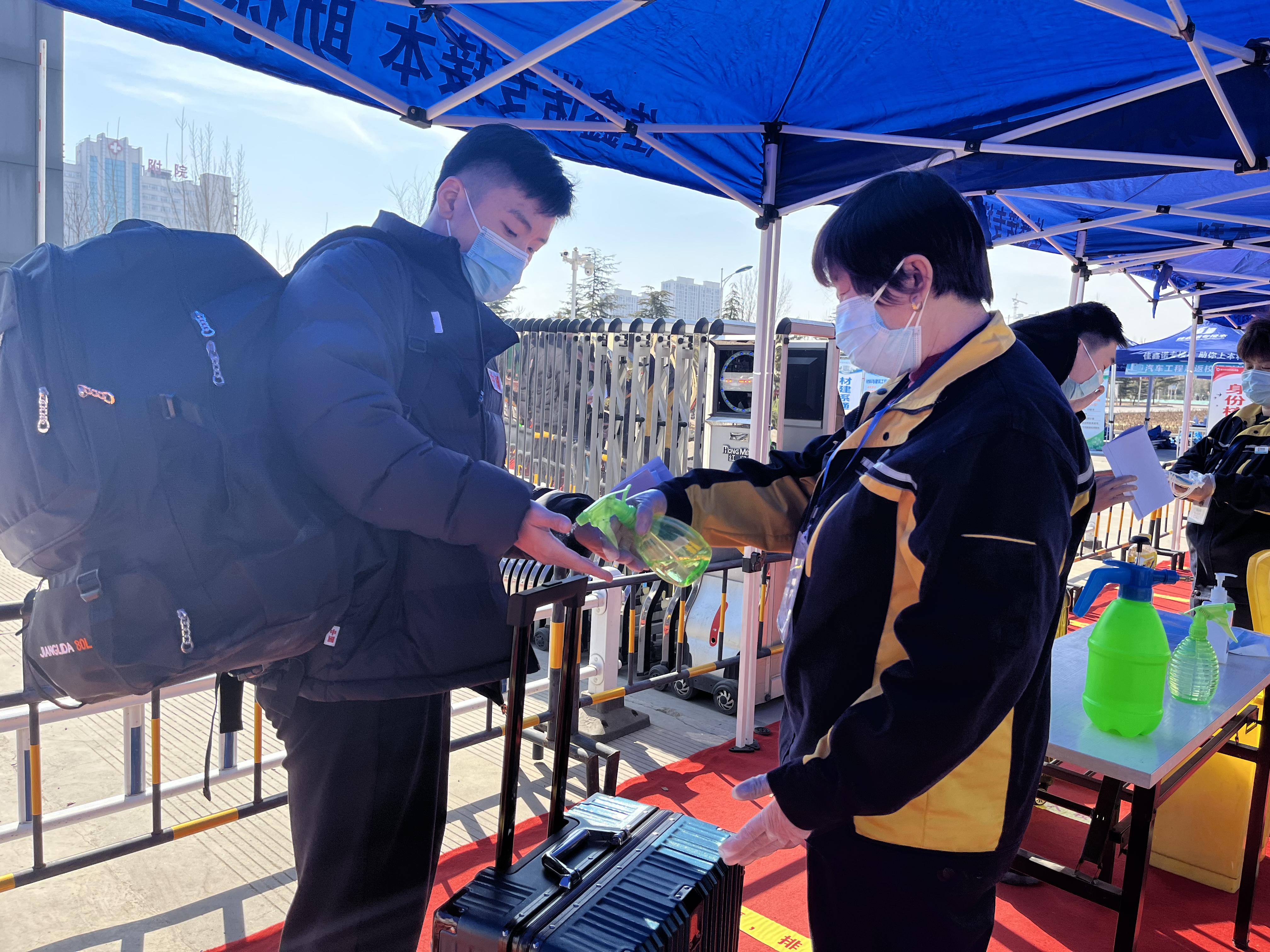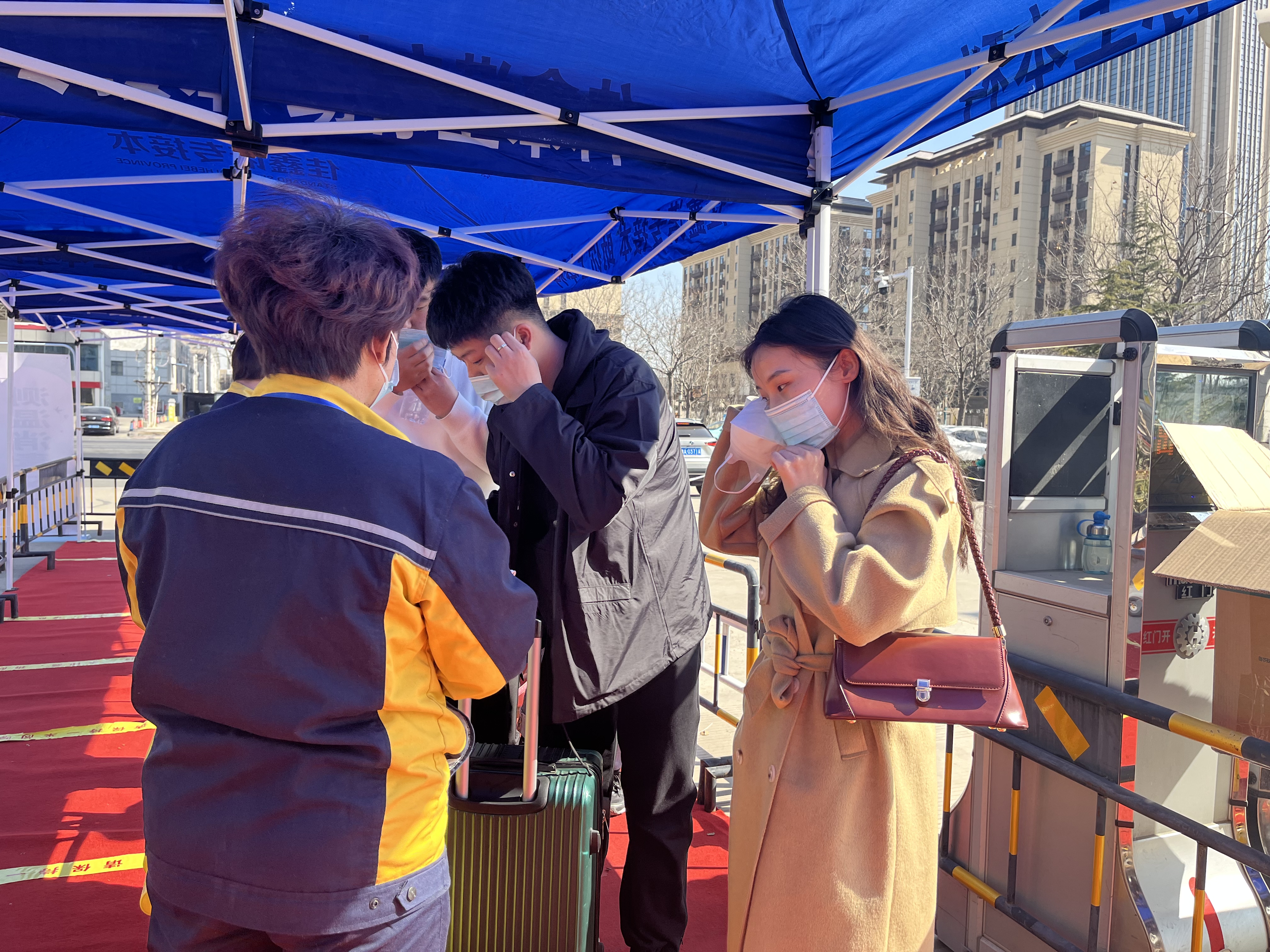 学生在工作人员的引导下有序进入校园核验身份、检查证件、测量体温、检测核酸。整个进校流程有条不紊、高效顺畅。学院领导详细询问学生返程情况,并与同学们进行了亲切交流,勉励他们在新学期踔厉奋发、笃行不怠,尽快进入开学状态、适应开学节奏,全身心投入到新学期的学习生活中去。