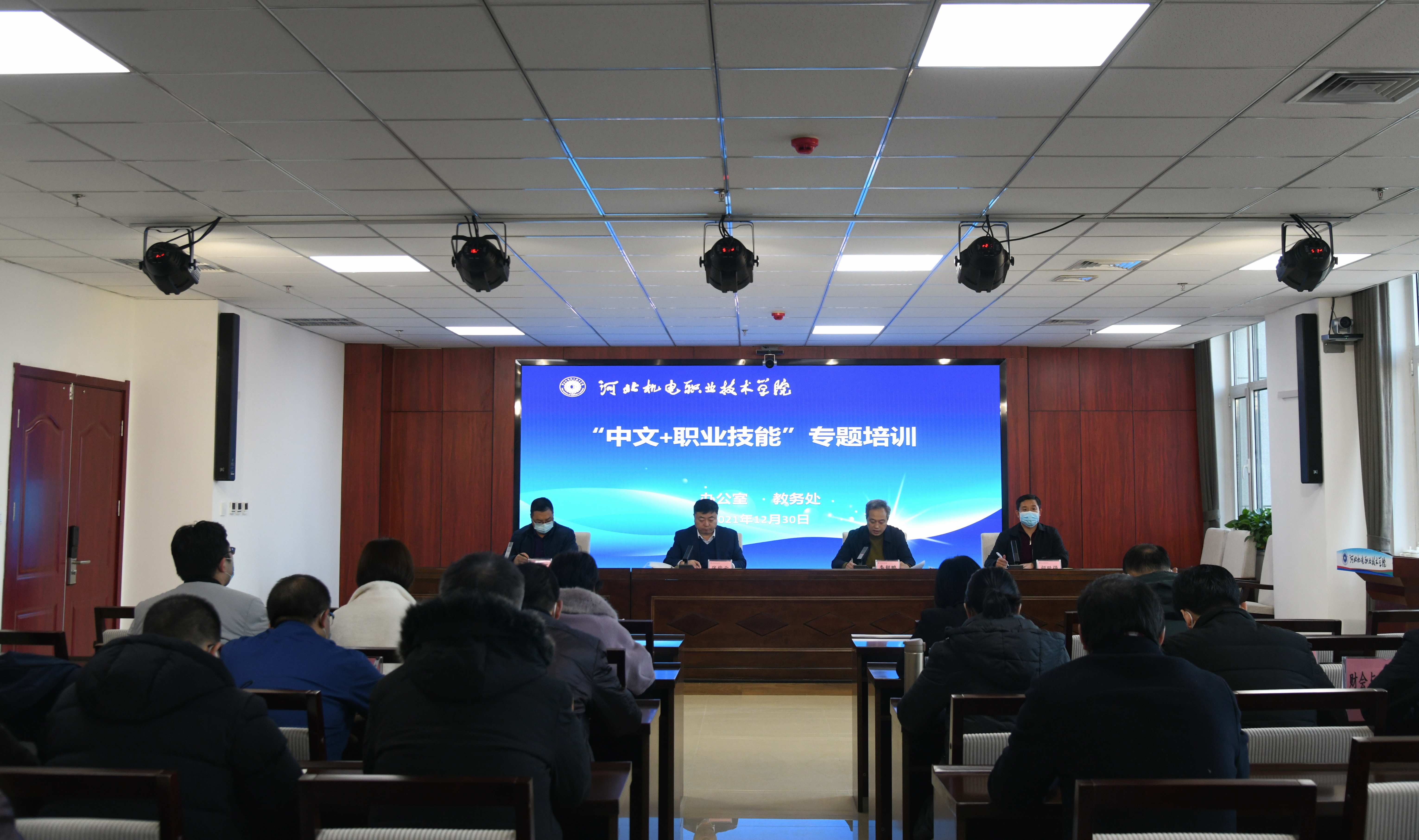 12月30日,我院在德润楼今麦郎会议室举办“中文+职业技能”专题培训,此次培训由办公室、教务处共同举办。北京工业职业技术学院的三位资深专家应我院邀请,在云端以国际化建设等为题做精彩报告。学院副院长李朝鹏、张能云出席培训。培训由张能云主持。