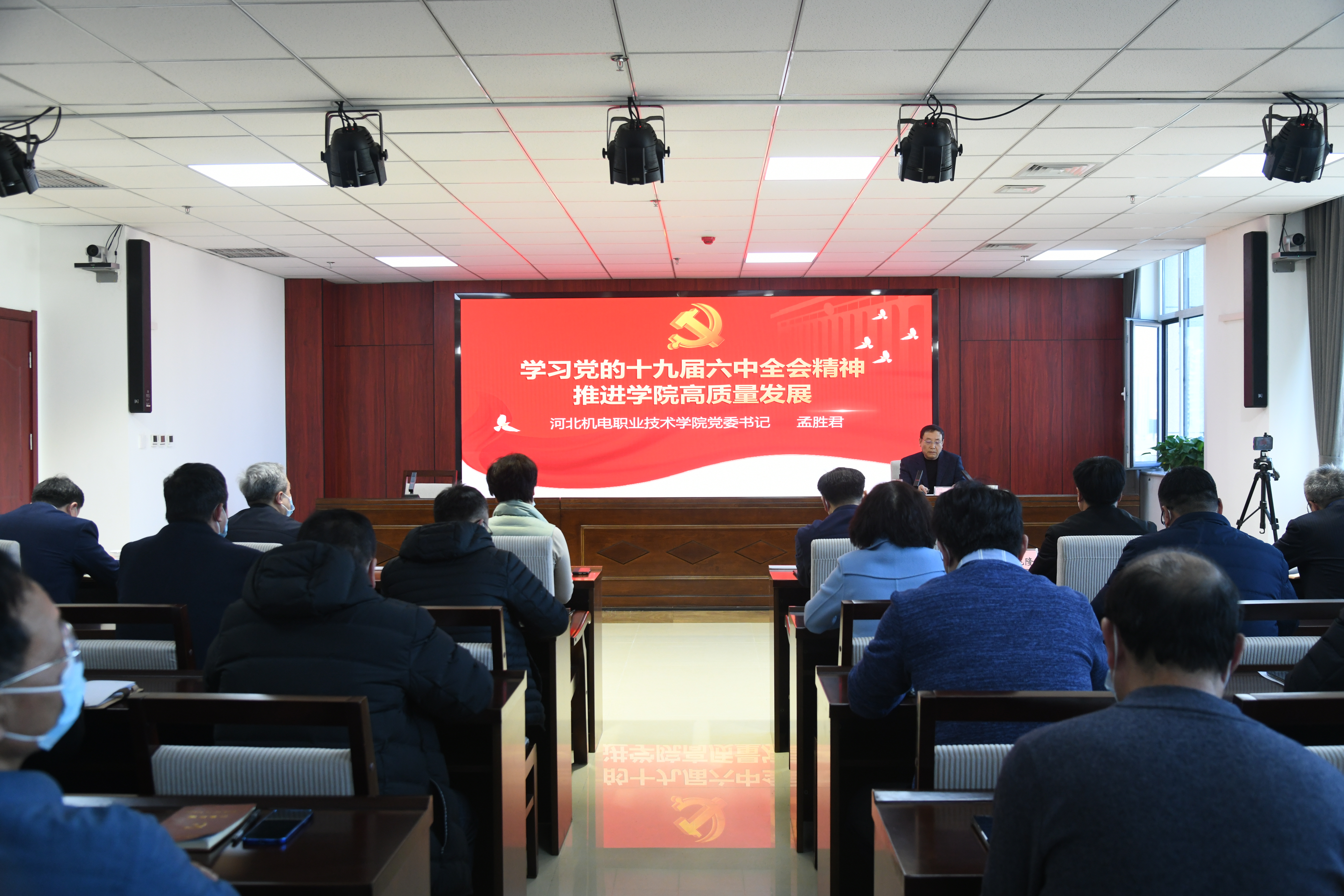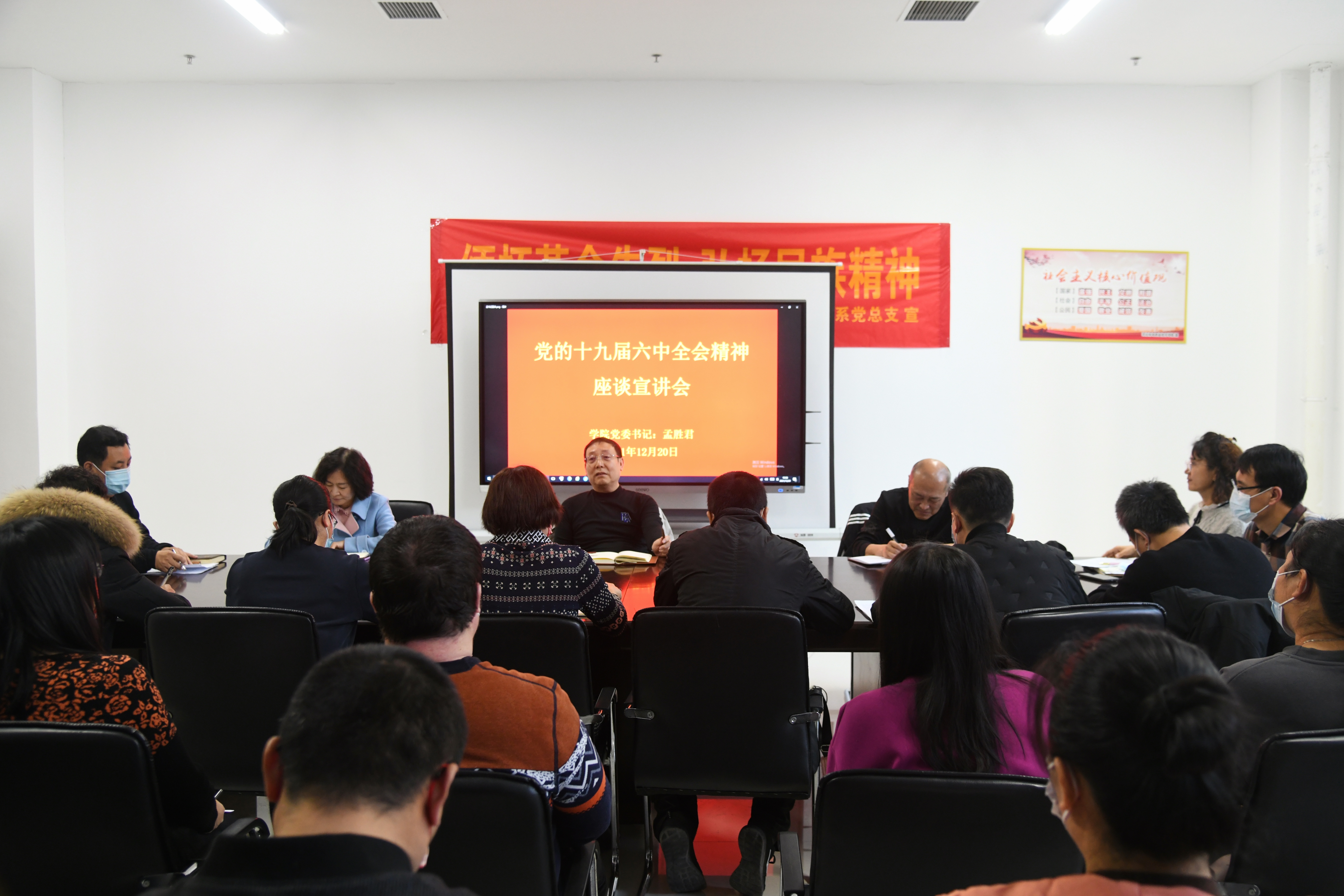 孟胜君以“学习党的十九届六中全会精神 推进学院高质量发展”为题,聚焦《中共中央关于党的百年奋斗重大成就和历史经验的决议》,从深刻认识党的十九届六中全会的重大意义,深刻认识党的百年奋斗的历史意义和历史经验,深刻认识以史为鉴、开创未来的重要要求,从党的百年奋斗历程中汲取智慧和力量等方面,对六中全会精神作了宣讲解读。