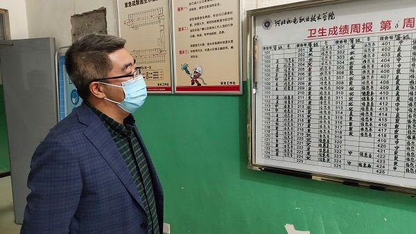 随后,赵晓东在系部相关负责人的陪同下走进学生公寓,认真查看宿舍卫生成绩周报、辅导员进宿舍签到表,并就信息反馈、落实好奖惩给予指导意见。赵晓东逐一走进包联班级的宿舍,仔细查看宿舍内务情况,对宿舍内务给予高度评价,并与同学们亲切攀谈,鼓励大家要持之以恒,始终把宿舍386、486内务标准落实好。赵晓东还询问了同学们线上学习、宿舍用电、体育锻炼等情况,面对面听取同学们的意见建议,提醒大家天气变冷要注意保暖、注意宿舍用电安全,积极参与“文明宿舍”创建,养成良好的学习生活习惯。