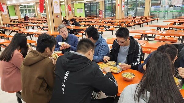 为进一步做好大学生思想政治教育工作,深入掌握学生学习、生活、思想等状况,促进学生德智体美劳全面发展,不断提高学院人才培养质量,10月28日,纪委书记赵晓东走进学生餐厅,与包联班级信息工程系大数据技术2101班的同学们和辅导员刘悦悦老师共进早餐,亲切询问学生的日常生活,了解饭菜的品质、价格、卫生等情况,认真听取了他们对于食堂饭菜、用餐环境、管理服务等方面的意见和建议,学生也少了往日的拘谨,与赵晓东热情交谈,气氛十分融洽。赵晓东建议同学们要养成用早餐的好习惯,保证身体健康和生活规律。
