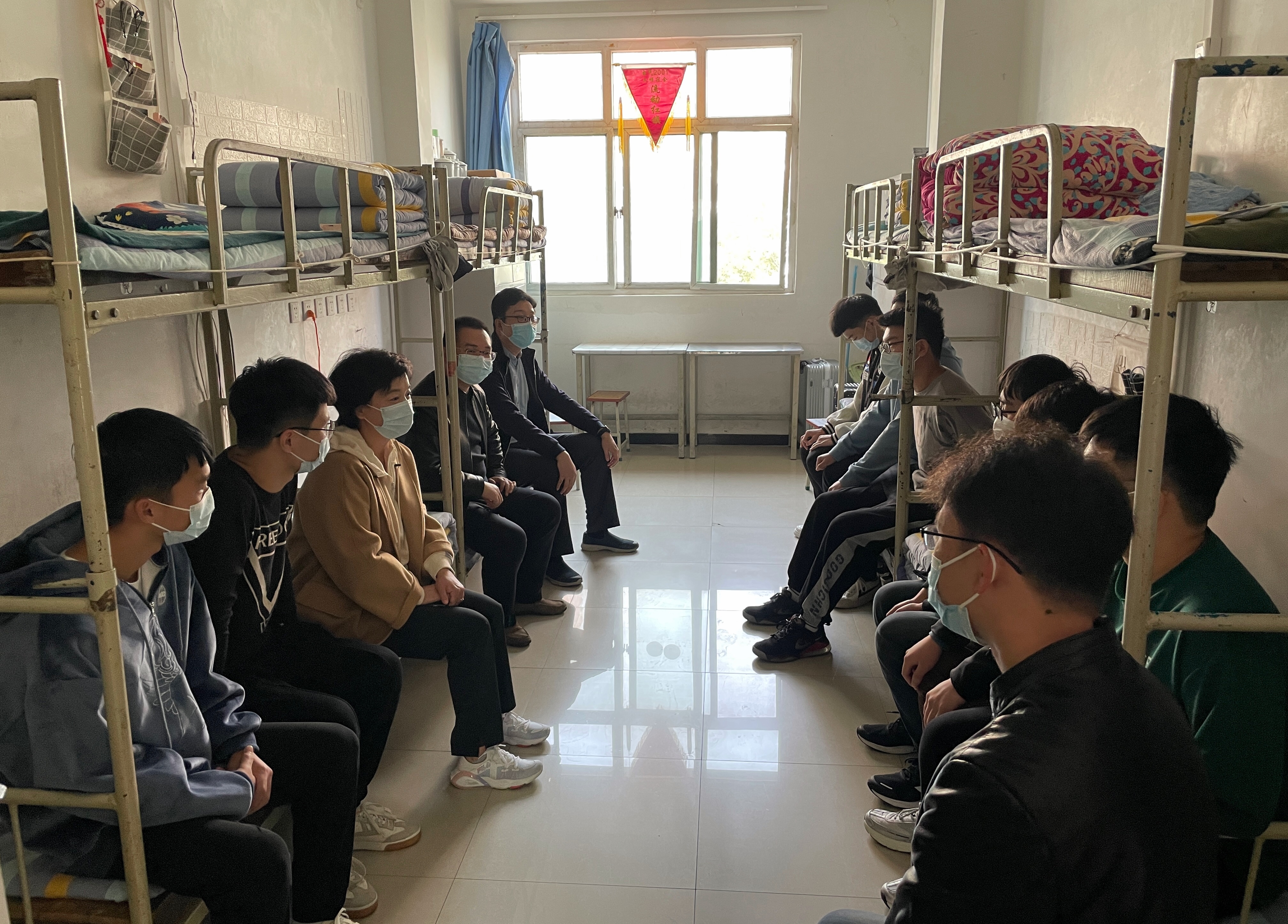 为进一步做好大学生思想政治教育和学习生活服务工作,了解学院疫情防控工作落实情况,深入开展学院党委“四进两联一交友”活动,10月24日上午,学院党委书记孟胜君、院长王晓凤在办公室、学生工作部、包联系部负责人及辅导员的陪同下,深入学生公寓,与学生面对面交流谈心、交朋友。