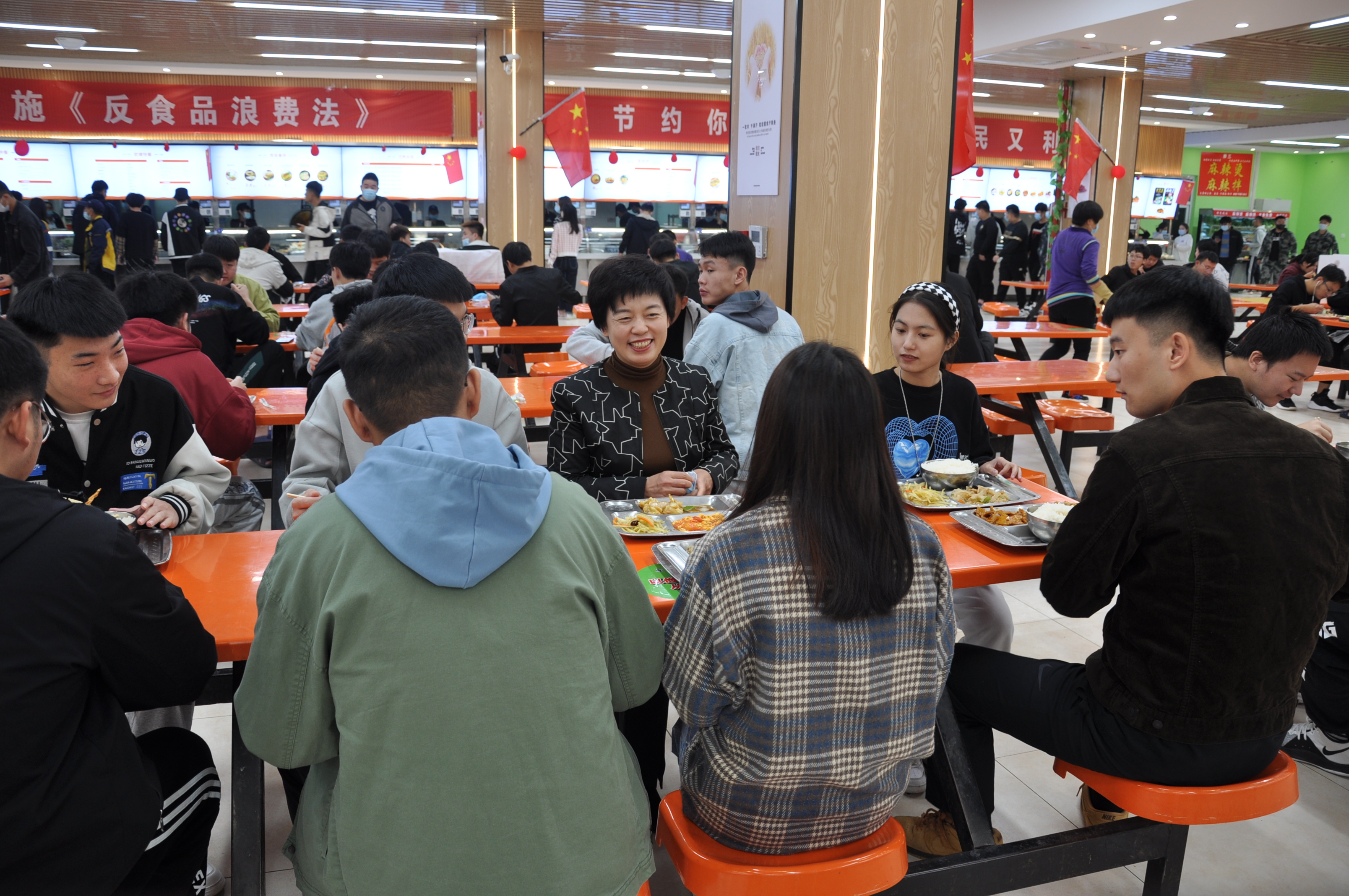 王晓凤来到美其食餐厅一楼,详细了解食堂饭菜的品种、质量、价格、卫生和安全等情况。餐桌上,王晓凤亲切询问同学们的学习与生活情况,并就疫情期间错峰就餐、线上教学等问题作了详细的回答。同学们畅所欲言,提出了自己的意见和建议。交流过程中,王晓凤对同学们所提出的意见和建议一一回应、解答。她指出,健康的体质是每个人学习工作的基础,健康要从饮食做起,而正确的饮食习惯更是保持健康的重中之重,健康饮食、文明就餐不仅是对身体负责的体现,也是当代大学生素质的体现,并叮嘱同学们,要按量取餐,爱惜粮食。