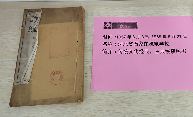 从展出的书籍中,我们不仅看到一个历经六十五载岁月、砥砺前行,与时代同呼吸,与民族齐奋进的学院,更看到了河北机电厚重的文化积淀和深沉的家国情怀。展出的藏书章作为图书的“出生证”、读者借阅的“流通证”,也无不带上时代的特色。一枚枚鲜红的印章中,河北机电人所肩负的机电文化传播的历史使命得到无声的表白。
