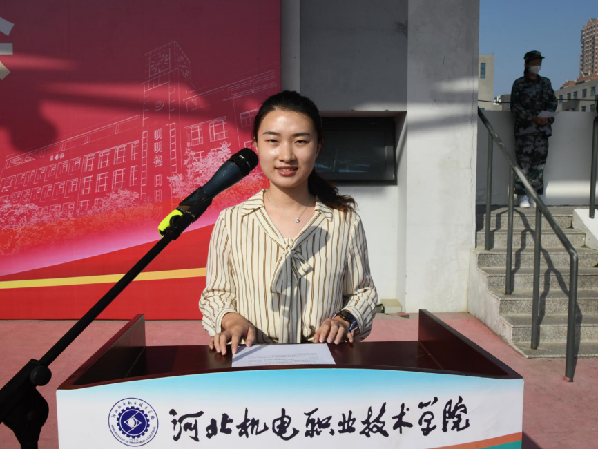 会上,体育工作部休闲体育2003班孙鉴同学代表在校学生和教官发言;材料与建筑工程系辅导员鲁娴娴代表教师进行发言;机械工程系模具2101班学生洪安彤代表新生进行发言。