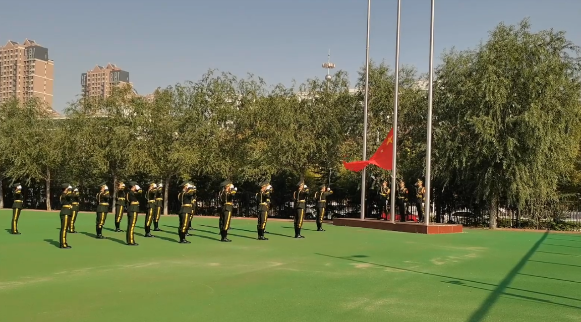 伴随着庄严的国歌声,五星红旗在仪仗队的护卫下冉冉升起,动员大会正式开始。