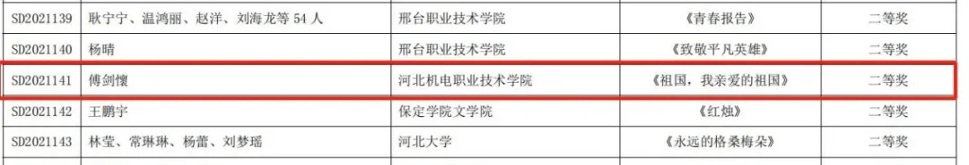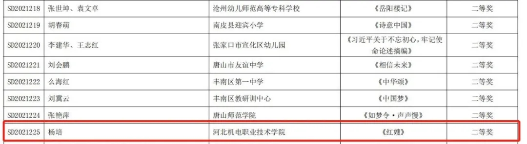 诵读古今经典,彰显百年风华。在河北省教育厅、河北省语言文字工作委员会组织的经典诵读大赛选拔赛中,我院机械工程系傅剑懷同学的诵读作品《祖国,我亲爱的祖国》荣获大学生组二等奖,并进入国赛复赛;杨培老师的诵读作品《红嫂》获教师组二等奖;刘为民老师获“优秀指导教师”奖。