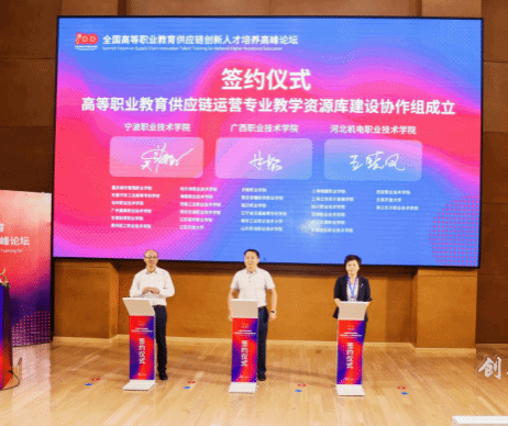 作为联合主持单位,院长王晓凤与宁波职业技术学院、广西职业技术学院相关领导,代表30余所院校出席了高等职业教育供应链运营专业教学资源库建设协作组成立的签约仪式。