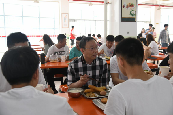 用餐过程中,孟胜君热情地与同学们交谈,就专业学习、校园安全、生活环境、食堂就餐、公寓管理等同学们关注的问题进行交流,同学们畅所欲言。孟胜君认真倾听同学们的心声,解答了同学们生活学习中的困惑,并提出了真挚的建议。他对同学们关心学院发展建设的积极发言给予了充分肯定,针对同学们提出的意见建议和问题进行了详细解答,并表示学院始终坚持以学生为本,积极改善办学条件,努力为同学们提供良好的学习环境。对存在和面临的一些实际困难,学院将积极帮助大家排忧解难,为同学们的成长保驾护航。