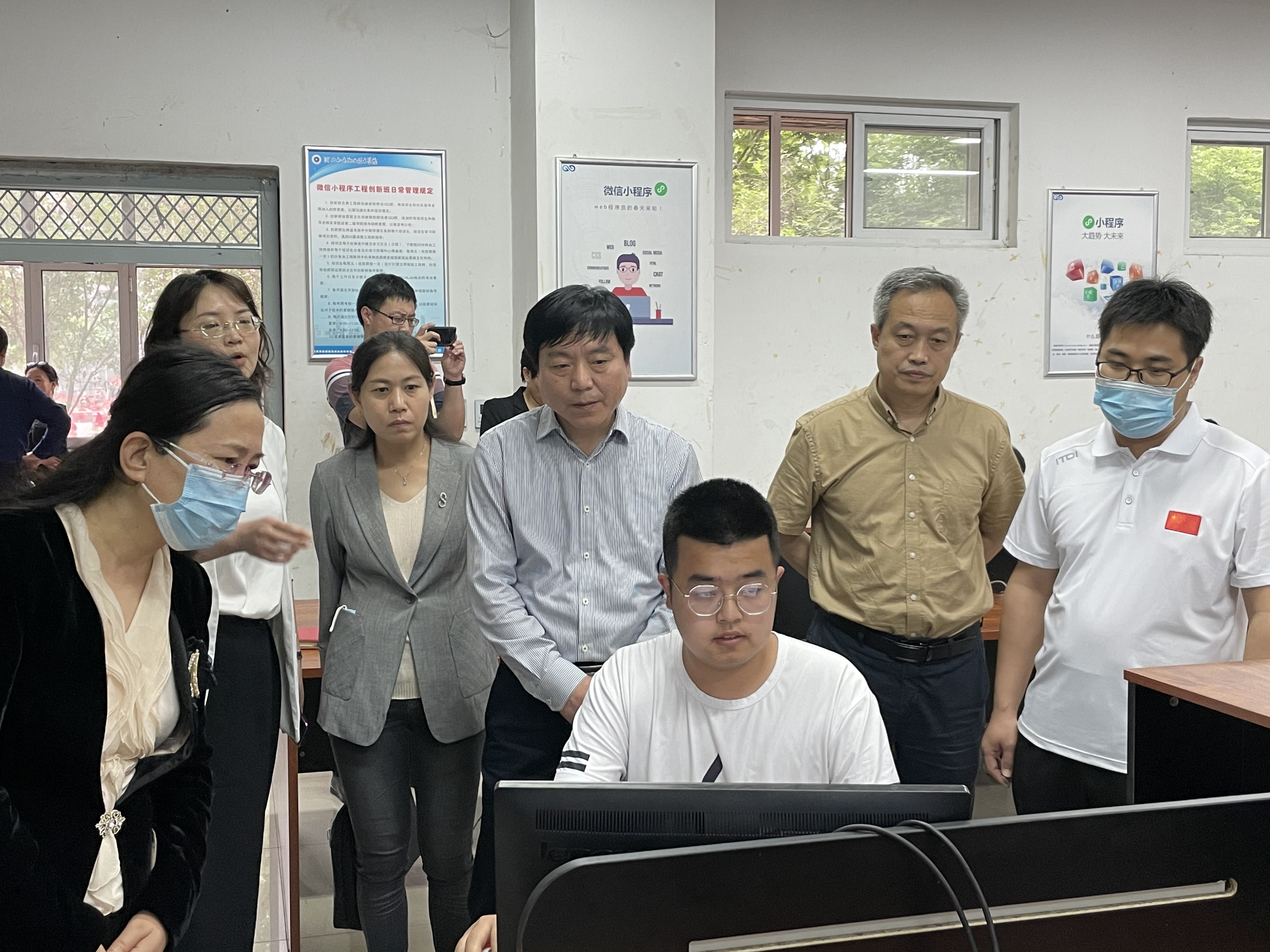 李建广一行参观了我院教学楼、美其食餐厅、学生公寓、守敬花园等处,考察了学院4个国家级实训基地、实习实训中心和科技创新中心(2)等地,并与相关教师、专家进行交流探讨。