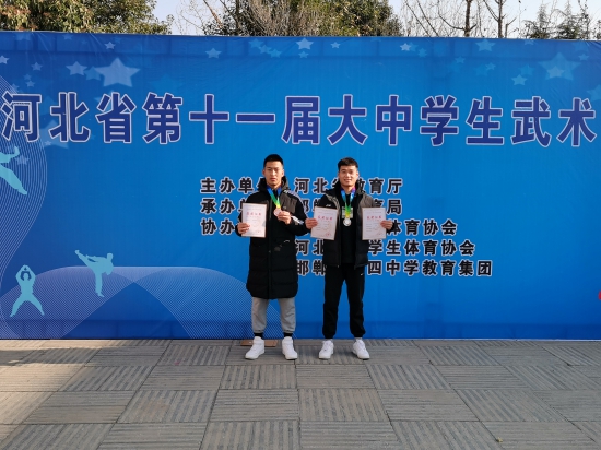 12月15日,河北省第十一届大中学生武术比赛在邯郸市第四中学举行,我院代表队分别参加了丙组初级三路拳和劈挂拳比赛,选派吴明欣和王明阳两名学生参赛,分获第二名、第三名和第五名。比赛由河北省教育厅主办,邯郸市教育局承办,参赛运动员来自全省各高校和中学,竞赛项目包括传统武术中的八卦掌、形意拳等十几种拳术和刀、枪、棍、剑等兵器,经过4天的紧张角逐,决出了各项目优胜者。