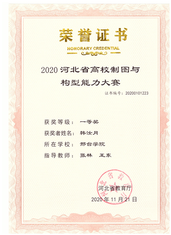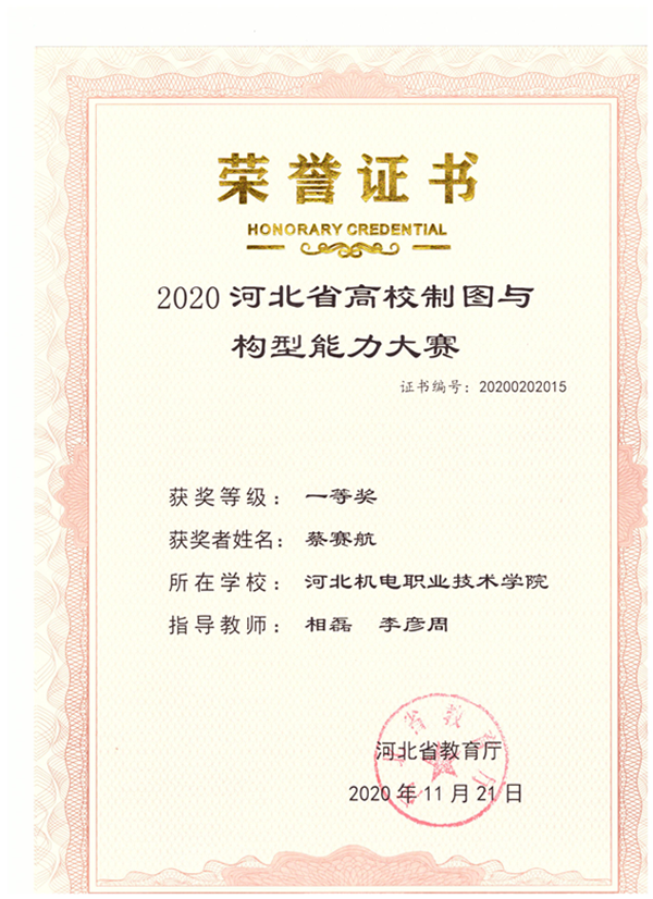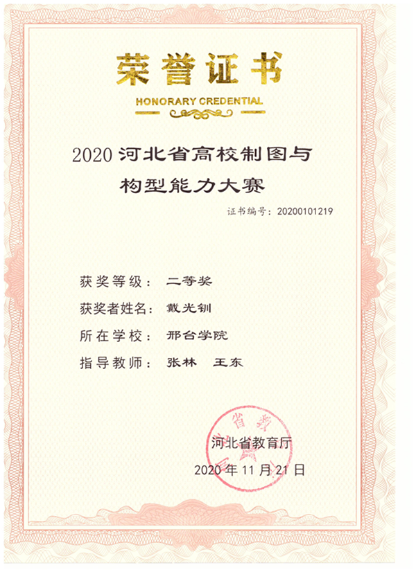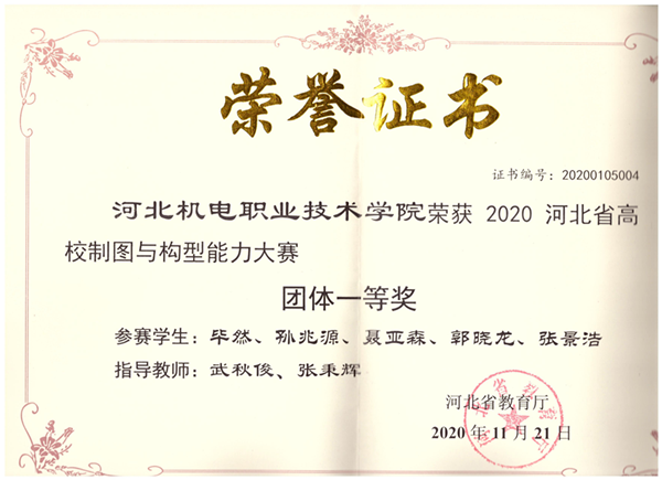 11月21日,“第十一届河北省高校制图与构型能力大赛”以线上形式举办。我院参赛选手在比赛中再创佳绩,获得团体一等奖1项、团体二等奖1项,个人特等奖1项、一等奖2项、二等奖5项、三等奖6项。
