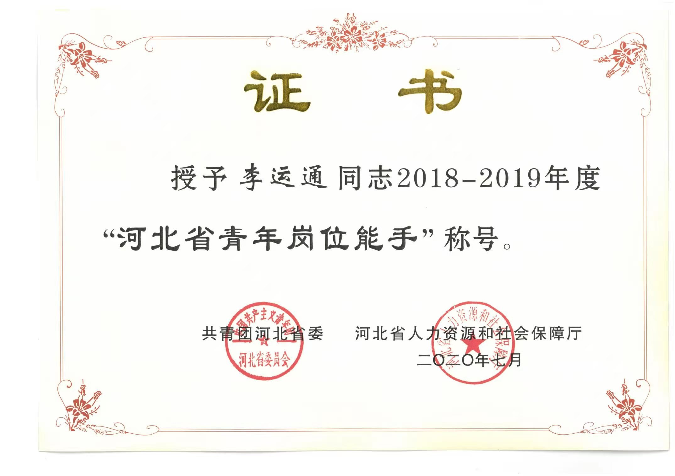 按照《关于开展2018-2019年度河北省青年岗位能手评选活动的通知》工作安排,共青团河北省委、河北省人力资源和社会保障厅联合开展了2018-2019年度河北省青年岗位能手选树活动,我院机械工程系赵帅和李运通两名同学荣获2018-2019年度“河北省青年岗位能手”荣誉称号。