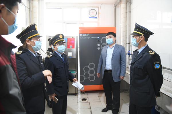 检查组一行到我院防疫物资储备区、地源热泵机房、学生公寓、餐厅等处对校园卫生环境、制度建设、学生管理、物资储备、生活饮用水安全、公共用品用具清洗消毒等情况进行了细致检查,充分肯定了我院在校园卫生及传染病预防等方面的工作,并就相关事项提出切实可行的建议。
