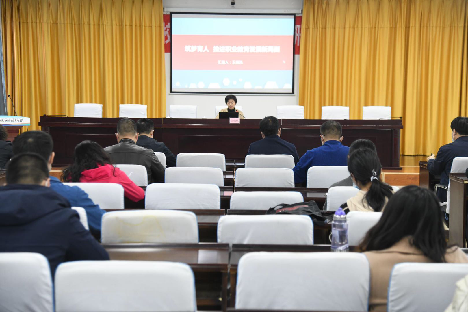 王晓凤以《筑梦育人 推进职业教育发展新局面》为题,从三个方面对大家进行了讲解。第一,职业教育发展机遇前所未有;第二,准确把握职业教育的地位与定位;第三,奋进担当筑梦育人。