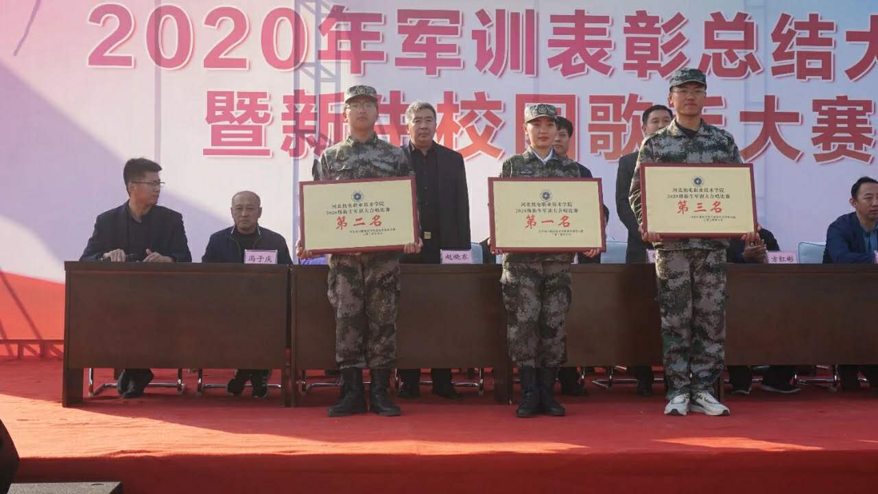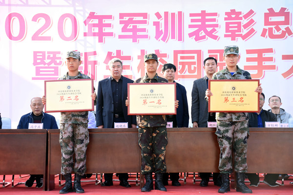 学院领导为获奖单位颁奖。张兆隆发表讲话,他代表学院党政领导对2020级全体新同学圆满完成军训任务表示亲切慰问,并向在军训期间不辞辛苦的全体辅导员、班主任和军训教官表示衷心的感谢,向在军训期间取得优异成绩连队表示热烈祝贺。他指出,军训使同学们学到了国防知识,增强了国防观念,培养了团队精神,锻炼了同学们吃苦耐劳、坚韧不拔的意志品质。军训是艰苦的,希望同学们能把在军训期间学到的好思想、好作风、好习惯带到今后的学习和生活中,努力完善自己,为学校争光,为社会服务,并要立刻做好在完成军训任务后,即将开启的课堂学习生活的准备工作。