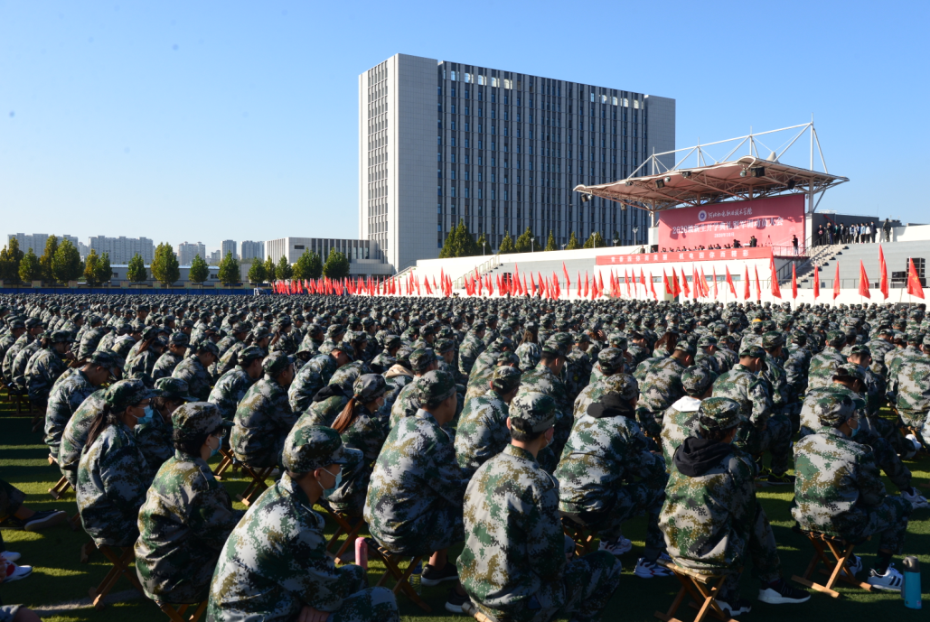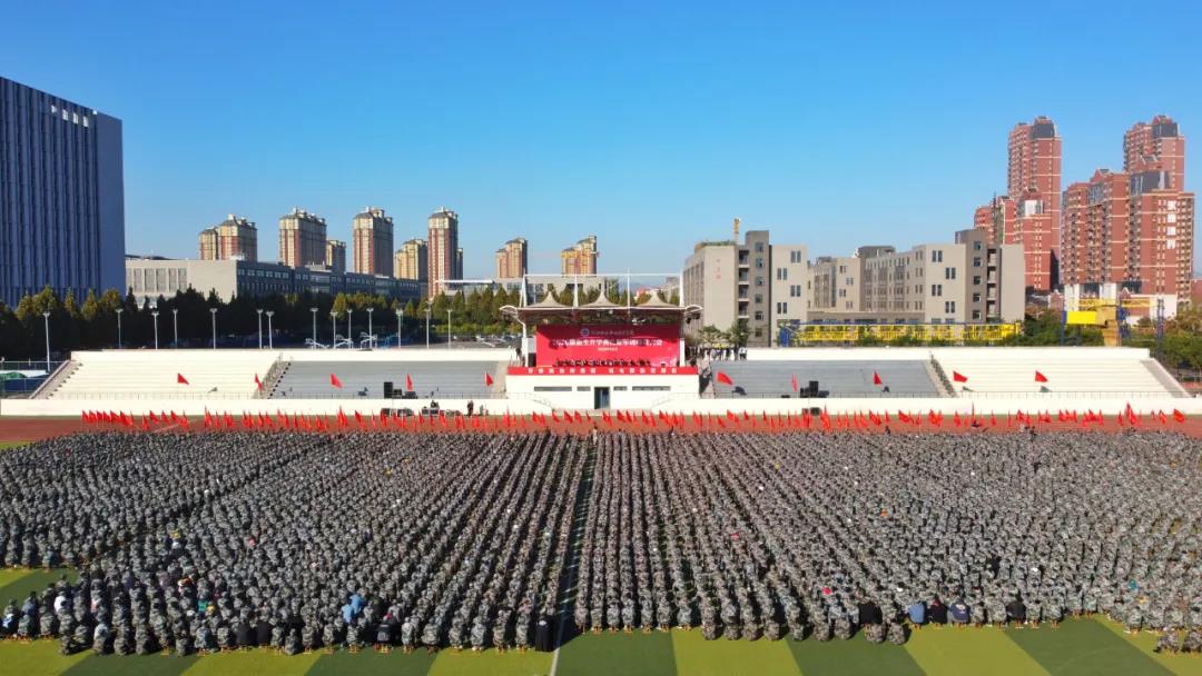 金秋万里,风鹏正举。10月17日上午,我院在田径运动场隆重举行2020级新生开学典礼暨军训动员大会。学院党委书记孟胜君,院长王晓凤,党委副书记王振京,副院长李朝鹏、张兆隆、张能云,纪委书记赵晓东出席,学院中层干部、团总支书记、辅导员、军训教官及2020级118名本科生、4644名专科生全体新生参加典礼。孟胜君向新生军训营授旗。王晓凤作讲话。典礼由王振京主持。