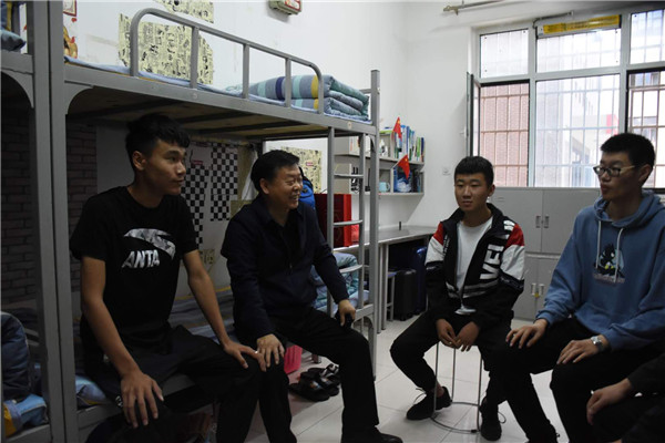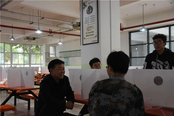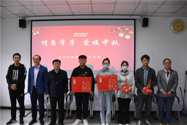 王振京向学生们送上了温馨的祝福和月饼、水果等节日礼物,表达了学院对全体学生的关怀。他指“今年的国庆节也是中秋节,祝你们国庆、中秋节快乐,礼轻情义重,河北机电职业技术学院永远你们温暖的家。”他还参加贫困学生座谈会,与同学们亲切交谈,详细了解他们的家庭基本情况、在校学习和生活情况,勉励他们正视困难,战胜困难,不要让暂时的困难成为人生前进路上的绊脚石,而应成为砥砺前行的磨刀石。同时,他希望大家珍惜韶华,奋发有为,励志成才,书写出无愧于时代、无愧于历史的人生华章。