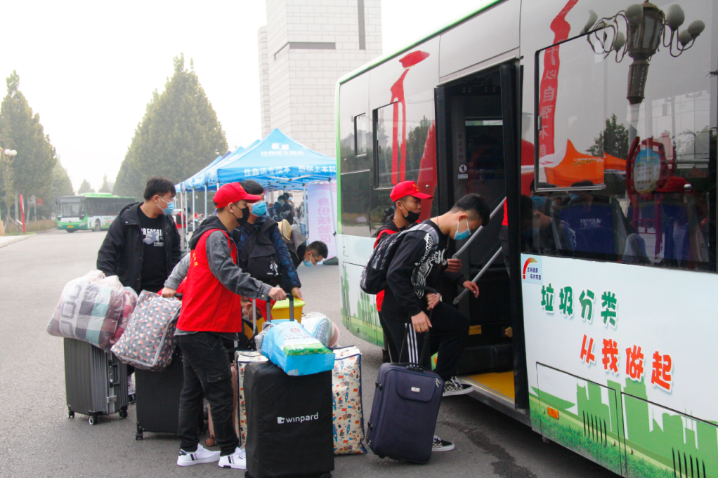为进一步做好疫情防控常态化迎新工作,学院采取错峰开学,新生于15、16日分两批报到。学院在南门、东门分别安排工作人员对学生进行体温测量、行李消毒、更新口罩、身份核验等工作。校园里设置各系接待站、读卡报到点、绿色通道、医疗服务点、志愿者服务亭等。摆渡车穿梭往来,数百名学生志愿者热情服务,帮助同学们运送行李、提供指引,带领新生走好大学第一步。同学们验证、乘车、注册、领取物品、登记住宿,各个环节井然有序。