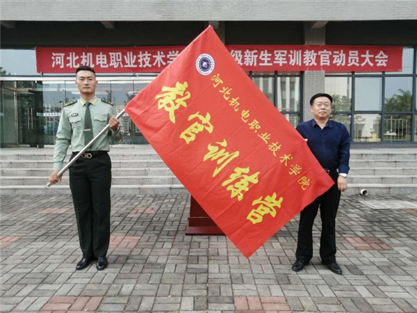王振京为教官训练营授旗,并代表学院党委向参加训练的同学们表示衷心祝贺。王振京强调,在战“疫”形势下,军训工作显得格外重要,必须建设一支素质高、纪律严、听指挥、能战斗的教官队伍。他对参训教官提出三点希望和要求:一是学生军训工作要全面贯彻党的教育方针,发挥军训在素质教育中的重要作用;二是希望同学们通过刻苦训练,高标准掌握军训科目,以队列训练和内务整理为重点,严格训练,练出水平;三是科学安排学习时间,做到学习训练两促进、双丰收,处处将遵规守纪、认真学习、积极参加学院各项活动牢记于心,付之于行,努力做同学的学习榜样。王振京宣布河北机电职业技术学院2020级新生军训教官训练正式开始。