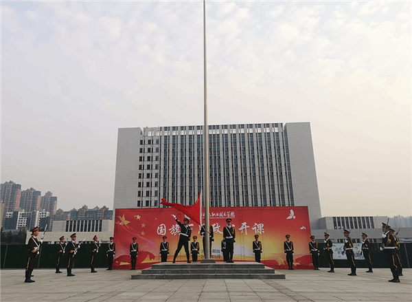 新学期、新征程、新气象。9月7日清晨,新学期第一天,我院在学府广场隆重举行2020年秋季新学期开学升旗仪式。学院领导、中层干部、全体辅导员和思政课教师及在校学生参加活动,其他未返校师生通过线上观看升旗仪式。伴随着雄壮激昂的国歌,鲜艳的五星红旗冉冉升起,全体师生高唱国歌,深怀对祖国的崇高敬意,并面向国旗行注目礼。