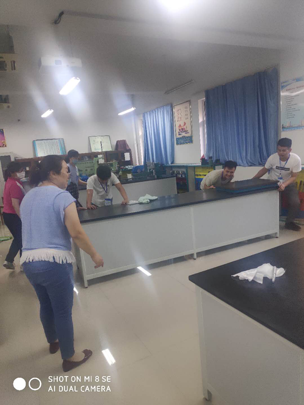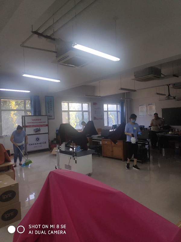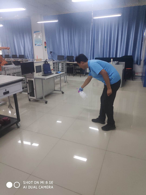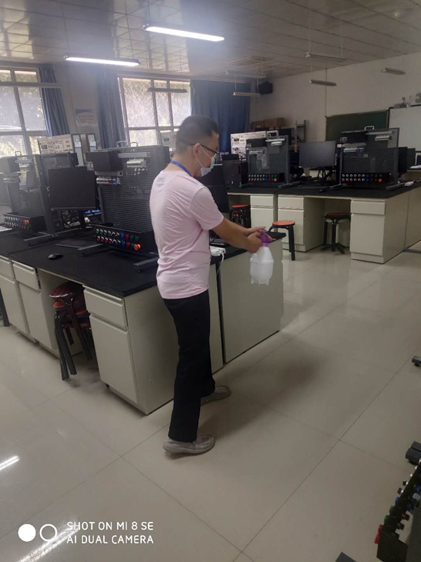 老师们不怕脏、不怕累,分工有序、亲密合作、耐心细致地完成了消杀维保任务。目前,所有实训室均已就位,等待同学们的归来。