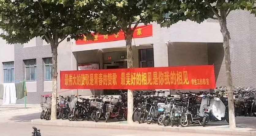 宿舍与夹道遍布的横幅将整个校园装饰一新,充满温馨和谐的氛围,热烈欢迎同学们回家。