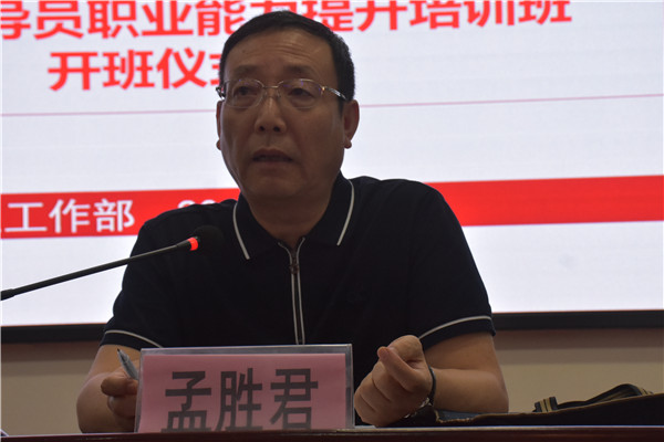 为深入学习习近平新时代中国特色社会主义思想和党的十九届四中全会精神,贯彻落实学院第三次党代会精神,进一步提升学生管理工作水平,推动辅导员队伍专业化、职业化建设,学院于8月30日在河北前南峪教育培训基地举行了2020年辅导员职业能力提升培训班开班仪式,党委书记孟胜君出席会议并发表讲话,党委副书记王振京、副院长张能云、纪委书记赵晓东及学生工作部、马克思主义学院相关人员和各系部学生管理工作负责人、全体辅导员参加开班仪式。会议由王振京主持。