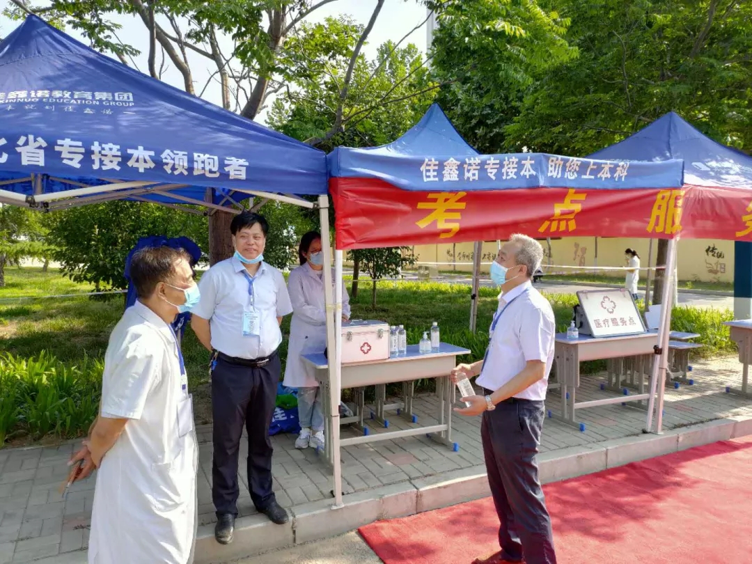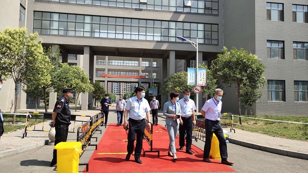 省巡视员白玉伟、市巡视员郭勇、耿树杰一行到学院巡视2020年高职单招考试工作,在我院院长王晓凤,副院长李朝鹏、张兆隆,及办公室、招生就业处、教务处相关同志的陪同下对我院考点防疫、医疗服务等工作进行巡查。
