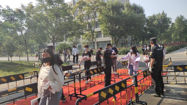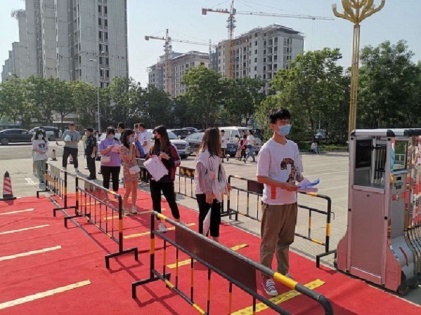 本次单招安排了近400名教职工负责考务和疫情防控工作,联系邢台市三院提前一周对所有工作人员进行核酸检测,所有工作人员每天测量体温,并如实填报《身体健康状况监测记录表》,一律佩带口罩上岗,间距保持在1米以上,并配备一定数量 的预备人员,一旦工作期间出现发热(体温超过37.3℃)等症状可及时处理。为方便考生,我院在南门、东门分别设置了体温测试通道,按1米安全距离设置检测位,并为没有佩戴口罩的学生在进入校门前提供医用口罩、消毒免洗手液等防护用品。我院提供了平面图、考场分布图、医疗服务点、免费领水点、指示牌和指示地贴等功能服务设施,还联系市疾控中心在两个考场入口分别设置了体温超过37.3°的复检区,对体温超过37.3℃复检后仍超过37.3℃的学生,立即启用备用考场。据悉,本次考试全程无一例体温超过37.3°的考生和工作人员。