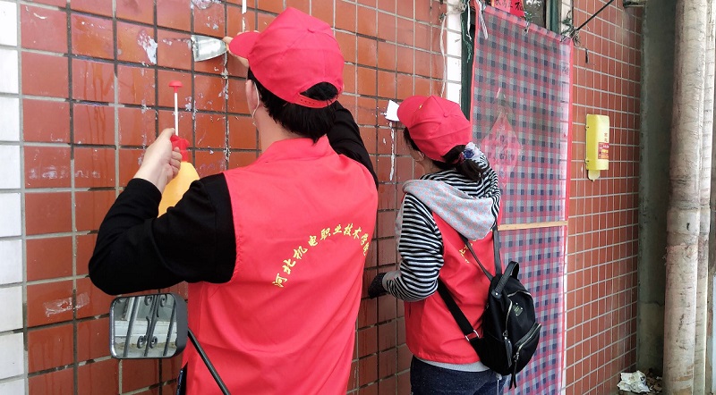 身穿红马甲的志愿者分工合作,籍宇带领一队去清理宣传栏上的小广告,大家熟练地使用着小喷壶,用毛巾把污渍擦拭干净,让宣传栏露出可爱的“笑脸”;马文静带领一队挨个清理住宅楼单元门口的小广告,灵活地对小广告进行清理,让墙壁更加整洁美观;还有一队志愿者将小房中间的卫生死角认真打扫干净……在志愿服务过程中,不少熟悉的退休老教师纷纷给志愿者竖起大姆指“点赞”,感谢志愿者们的热情帮扶。志愿者们也表示收获颇丰,今后会用更多实际行动为邢台创建全国文明助力添彩。