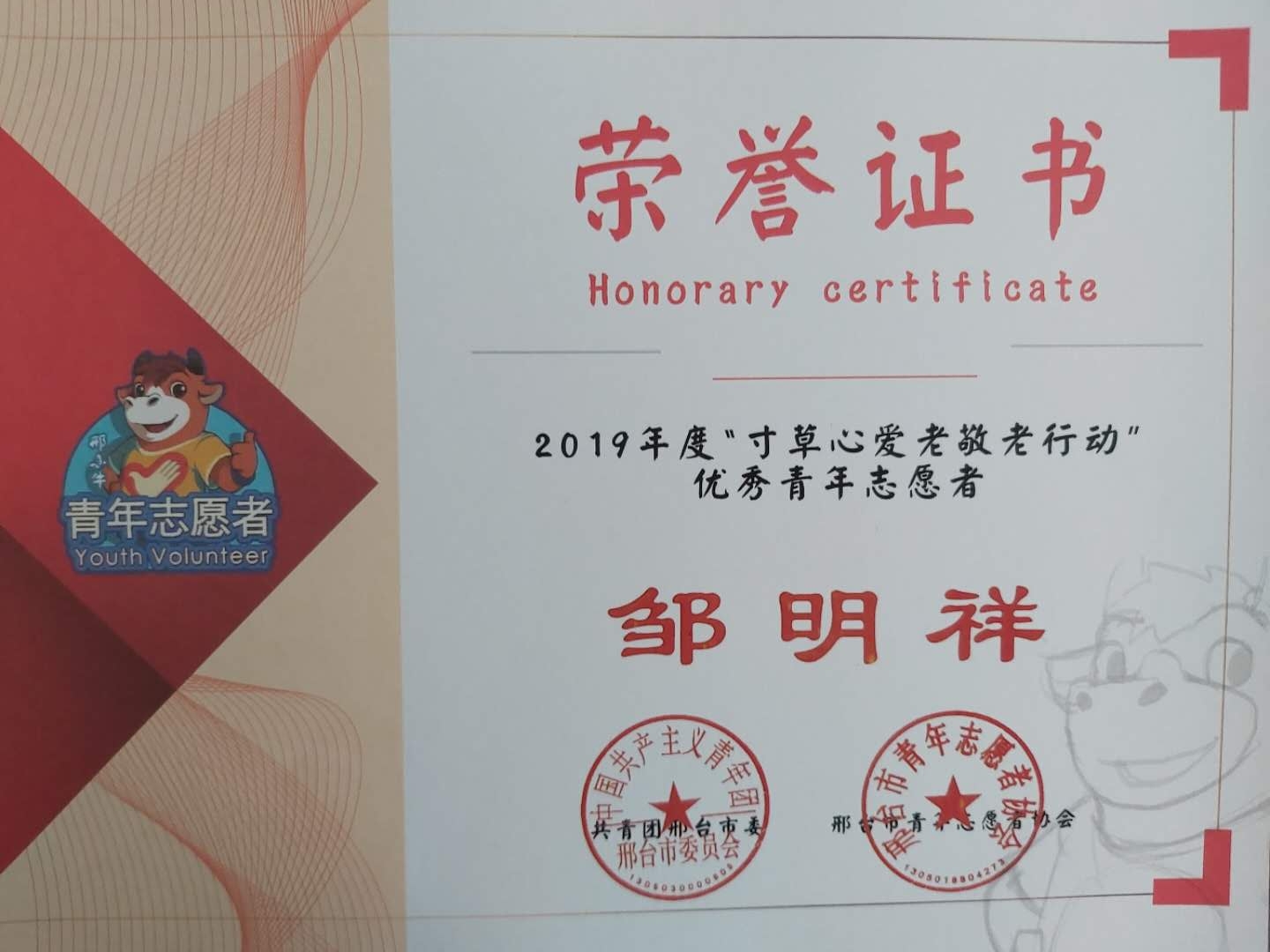 为表彰先进,推动志愿服务工作,共青团邢台市委、邢台市青年志愿者协会决定对2019年度“邢小牛”优秀青年志愿服务组织、优秀青年志愿者进行表彰。河北机电职业技术学院青年志愿者协会、河北机电职业技术学院信息工程系青年志愿者协会荣获“优秀青年志愿服务组织”荣誉称号、79人次获“优秀青年志愿者”荣誉称号。