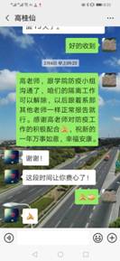 四是关爱学生,做好杭州实习学生的管理工作。疫情期间有19名学生滞留在杭州热维机电有限公司,针对他们面临实习期将至,部分学生及家长提出返乡及生活不便等问题,系部迅速成立工作组,连夜开会研究问题,制定了包括起草发送《致杭州实习19名学生的一封信》、辅导员和指导教师每日与学生视频、与企业沟通提供帮助等九项措施以及《学生返乡须知》,在学院疫情防控工作领导小组的亲切关怀和大力支持下,19名学生获得了每人300元的疫情防控经费,稳定了学生们的情绪,截至目前,17名学生已经陆续安全返回家乡,身体无状况。