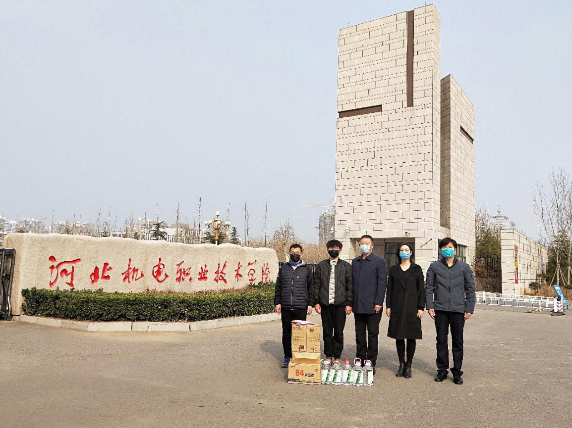 心系学院,共抗疫情。在新冠肺炎疫情防控阻击战中,学院的疫情防控工作时刻牵动着机电学子的心,临近毕业的霍志强同学经常与辅导员老师联系,十分关心学院的疫情防控工作。作为学生干部,他想到疫情期间,学院防控物资肯定紧缺,内心非常焦急,一直想着为学院疫情防控工作贡献自己的力量。顶岗实习期间,他以扎实的专业技能收获了人生“第一桶金”,再加上平时省吃俭用,通过各种渠道购置了5桶医用酒精(2.5L)、4箱84消毒液和两袋检查手套,专程从沙河市驾车到学院进行捐赠,用自己的实际行动支援学院疫情防控工作。