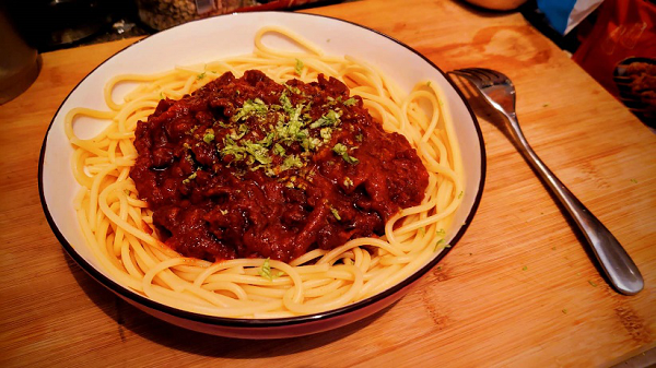 大卫做的美食Spaghetti Bolognese(意大利茄汁肉酱面)