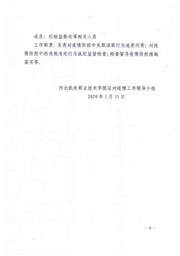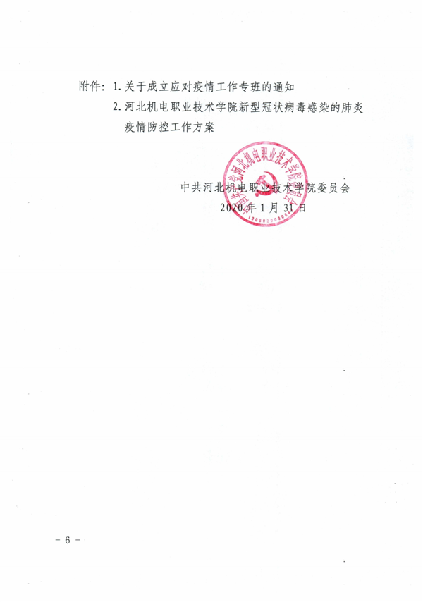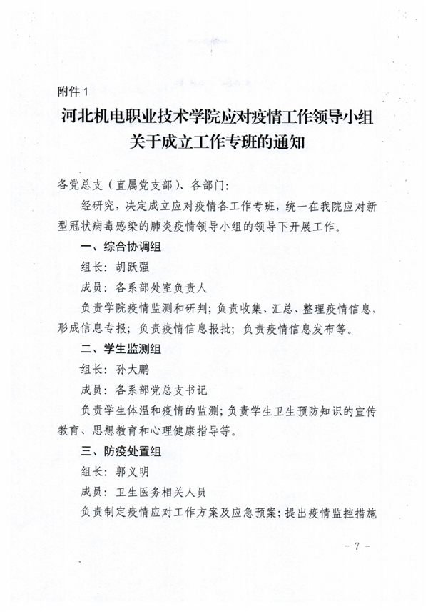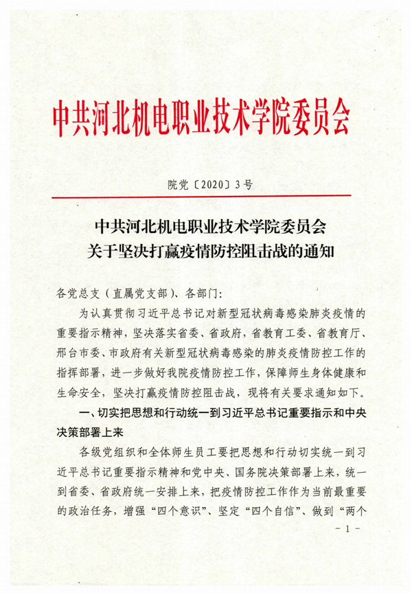 《中共河北机电职业技术学院委员会关于坚决打赢疫情防控阻击战的通知》和《河北机电职业技术学院应对疫情工作领导小组关于成立工作专班的通知》