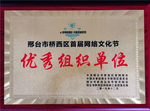 近日,邢台市桥西区首届网络文化节落下帷幕,因组织工作突出,我院获评邢台市桥西区首届网络文化节优秀组织单位奖。