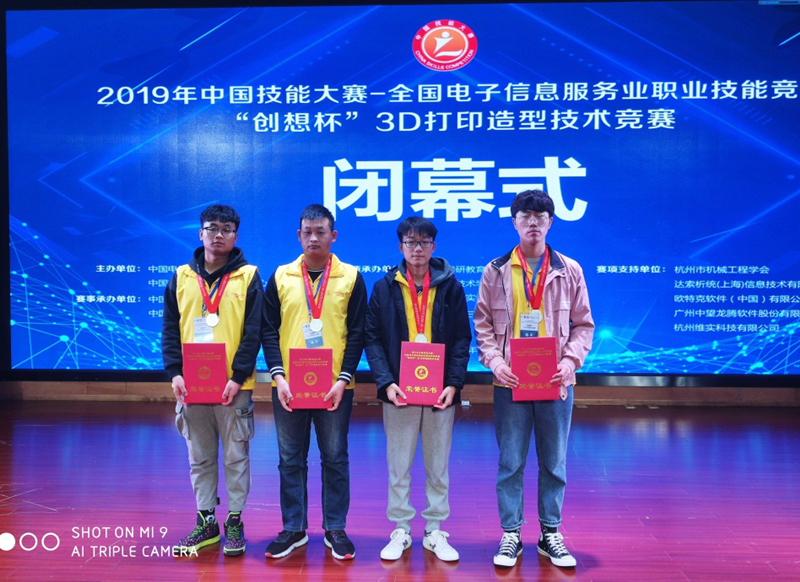 近日,2019中国技能大赛——全国电子信息服务业职业技能竞赛“创想杯”3D打印造型技术决赛在杭州举办。本次大赛共有55支学生组代表队、46支教师组代表队和45支职工组代表队参加。经过两天的激烈角逐,我院专科组和本科组通过中北部赛区选拔赛进入决赛,均获二等奖(全国第五名和第六名)。