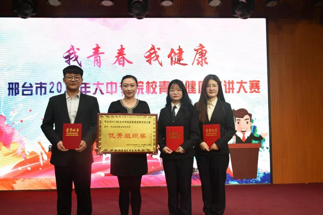 本次比赛由邢台市计划生育协会、共青团邢台市委主办,邢台职业技术学院承办。比赛以“我青春 我健康”为主题,以性与生殖健康、性病艾滋病预防、青年参与、人生规划等方面内容为主,真实生动地表达了积极正面、健康向上的观点。经过激烈角逐,韩龙紫宇获得本次比赛三等奖,姜晶晶、李昊泽同学各获得优秀奖,我院荣获优秀组织奖。