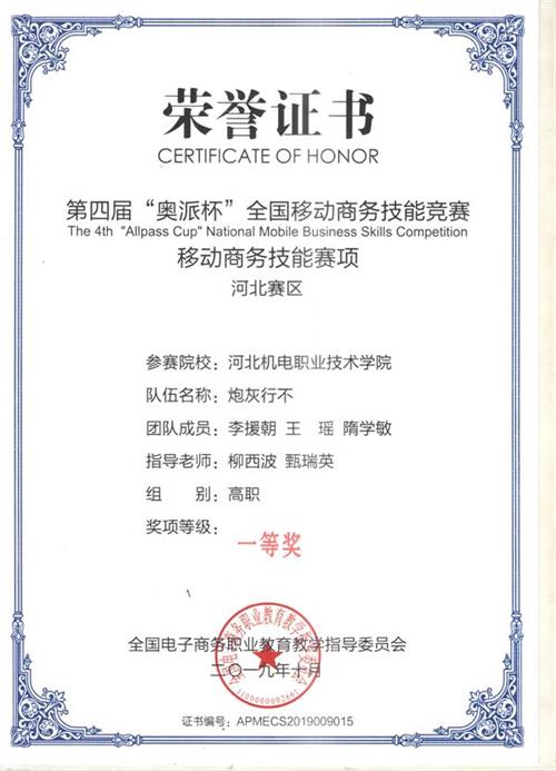 本次大赛设置了“微店设计与装修”“微信公众号运营”和“企业移动商务运营”三个模块,比赛时间共计4个小时,全面考察学生的视觉设计、文案策划、移动开发等综合能力。我院派出博导商科工程创新班王瑶、随雪敏,电商1803班李援朝3名同学参加比赛,经过激烈角逐,我院代表队获得团体一等奖,柳西波、甄瑞英两位老师获“优秀指导教师”称号,我院还获得“优秀组织单位奖”。