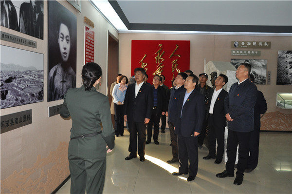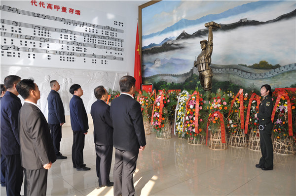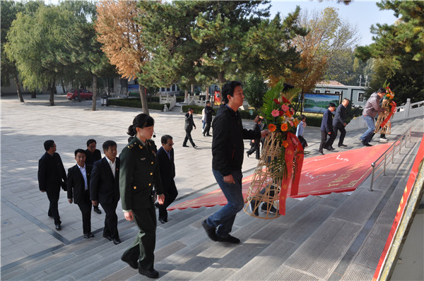全体人员在董存瑞纪念馆广场前列队,怀着崇敬的心情向战斗英雄董存瑞塑像鞠躬致敬,并向烈士进献花篮。当听到“代代高呼董存瑞”的歌声,看着烈士一件件珍贵的文物和一张张内容详实的展板,大家身临其境,心潮澎湃。