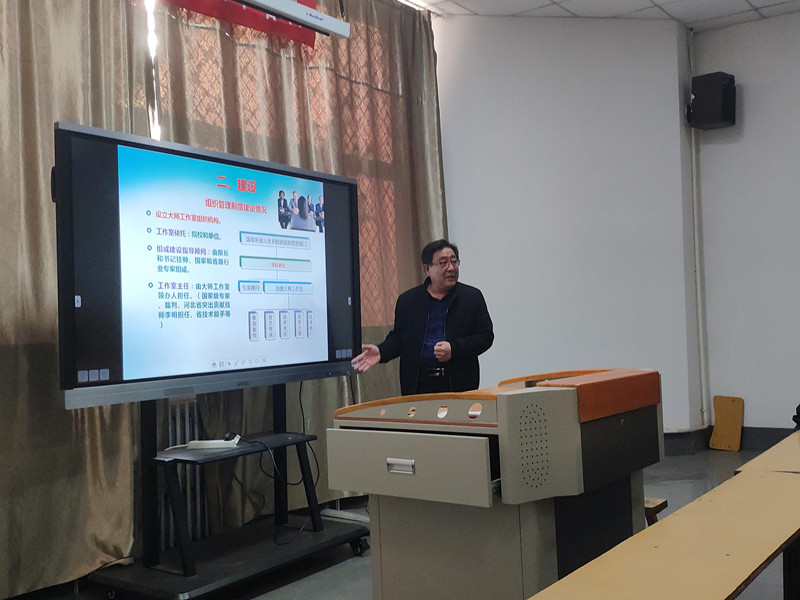 10月23日,我院承办的中高职教师素质协同提升研修名师工作室国培项目第二期培训系列讲座在张家口市怀来职教中心召开。河北北方机电工业学校国家技能大师工作室专家李明主讲,学院副院长张兆隆出席,院督导专员胡占军、机械系副主任王增春及相关项目组学员参加讲座。